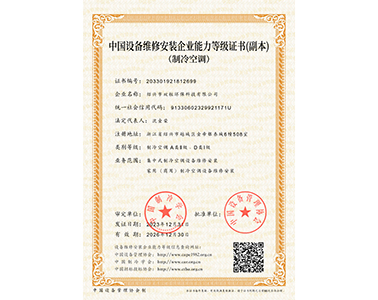 中國(guó)設(shè)備維修安裝企業(yè)能力等級(jí)證書(shū)